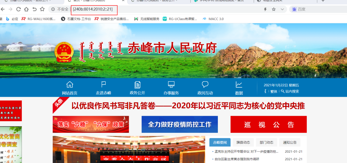 外网IPv6访问赤峰市政府网站