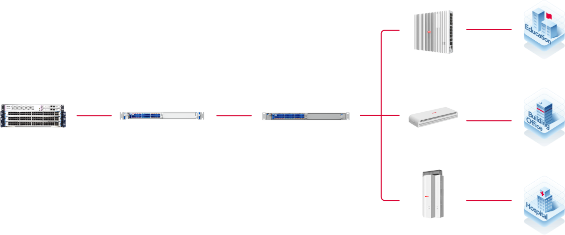 配合极简光方案,实现汇聚节点无源,光纤入室独享万兆/千兆带宽