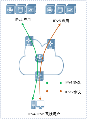• 对于新建业务系统的场景,推荐采用双栈技术,同时支持IPv4和IPv6,一步到位实现最优改造;