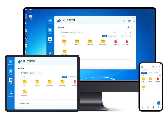 • 文件形式访问桌面:文件上传/下载/预览,客户端支持本地编辑、即刻同步