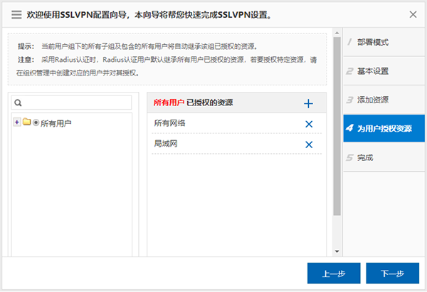 ▲ 图17:SSL VPN用户资源授权配置界面