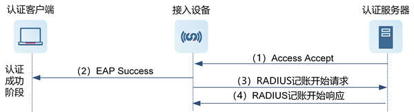接入设备在接收到认证服务器的“Access Accept”报文之后,意味着本次认证通过。接入设备给认证服务器发起记账开始报文,通知服务器开始对该认证客户端进行计费,详细报文交互过程,如图2-5所示。